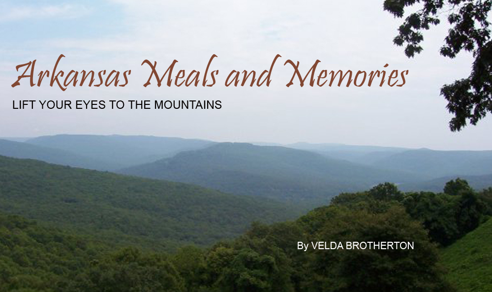 Arkansas Meals and Memories: Lift Your Eyes to the Mountains is a recipe book that contains 150 recipes from my mother’s collection of 80 years, plus quite a few gathered from some of the best cooks living in the Boston Mountains today. There are stories of growing up in these Ozarks during the Great Depression from my own memories and many sayings and beliefs of this area as well.