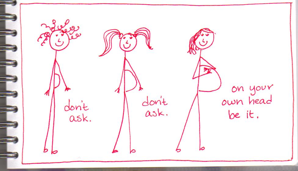 When teaching high school English, I endeavored to impress upon my impressionable young ninth graders not only the life-giving truths of simile, metaphor, and onomatopoeia, but the simple life rule that you NEVER ASK A WOMAN, ANY WOMAN, IF SHE IS PREGNANT.