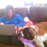 TV: I work on a couch with a laptop.  This picture is a pretty accurate depiction of how I write, complete with the lapdog lying across my legs.
