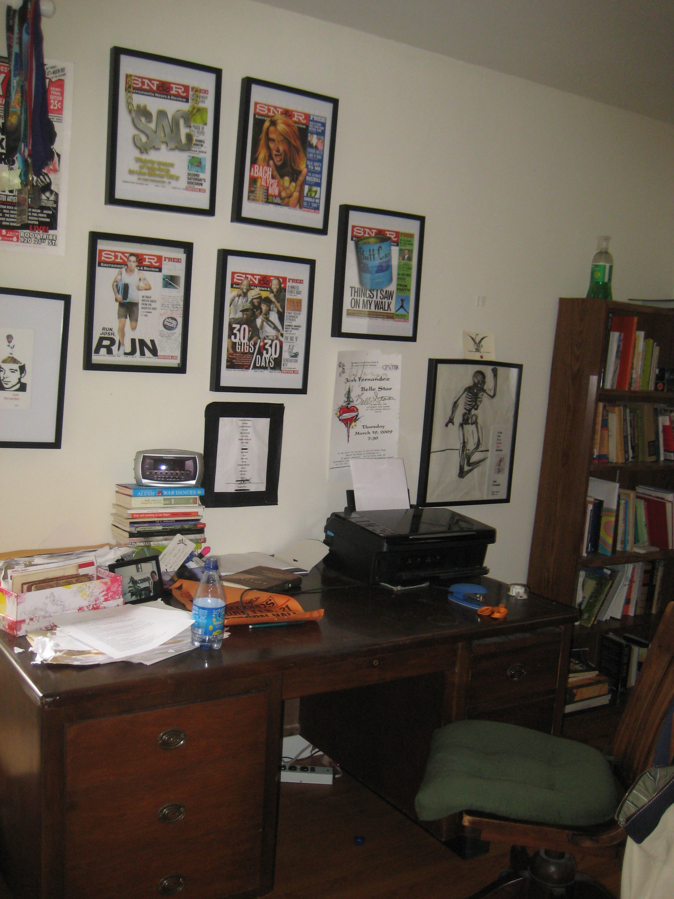JF: Pictures! We have a spare bedroom that we made into an office. It’s good to have an office without a TV. I’d never get anything done with the possibility of Judge Judy lurking nearby.