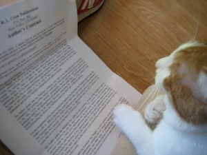 Kato Peruses an Author Contract (Oh if only my Clarkie could do the same!)