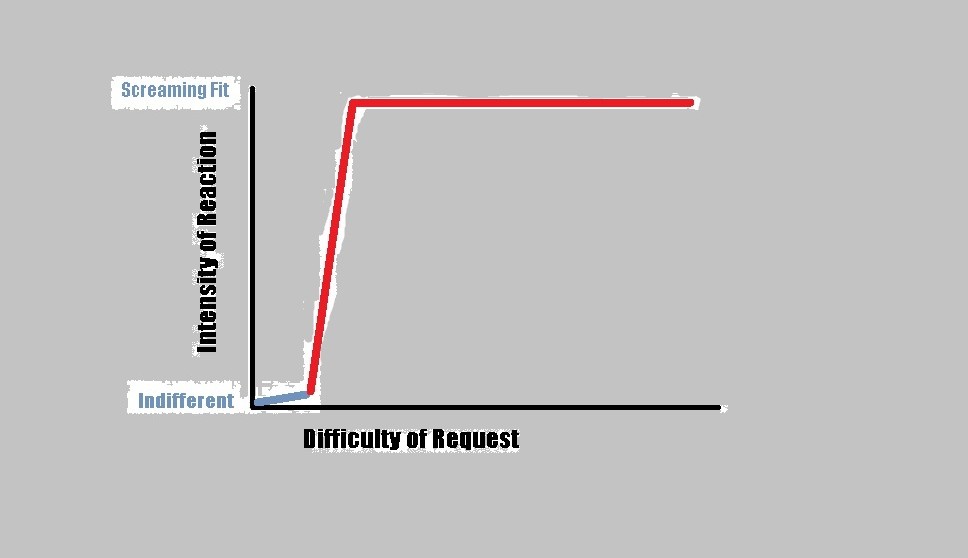 Other parents have corroborated this phenomenon: they make a simple request of their child and BOOM! They get a dramatic, hysterical reaction, usually accompanied by whining and/or tears, along with a wildly distorted rephrasal of the request. I think we need examples.