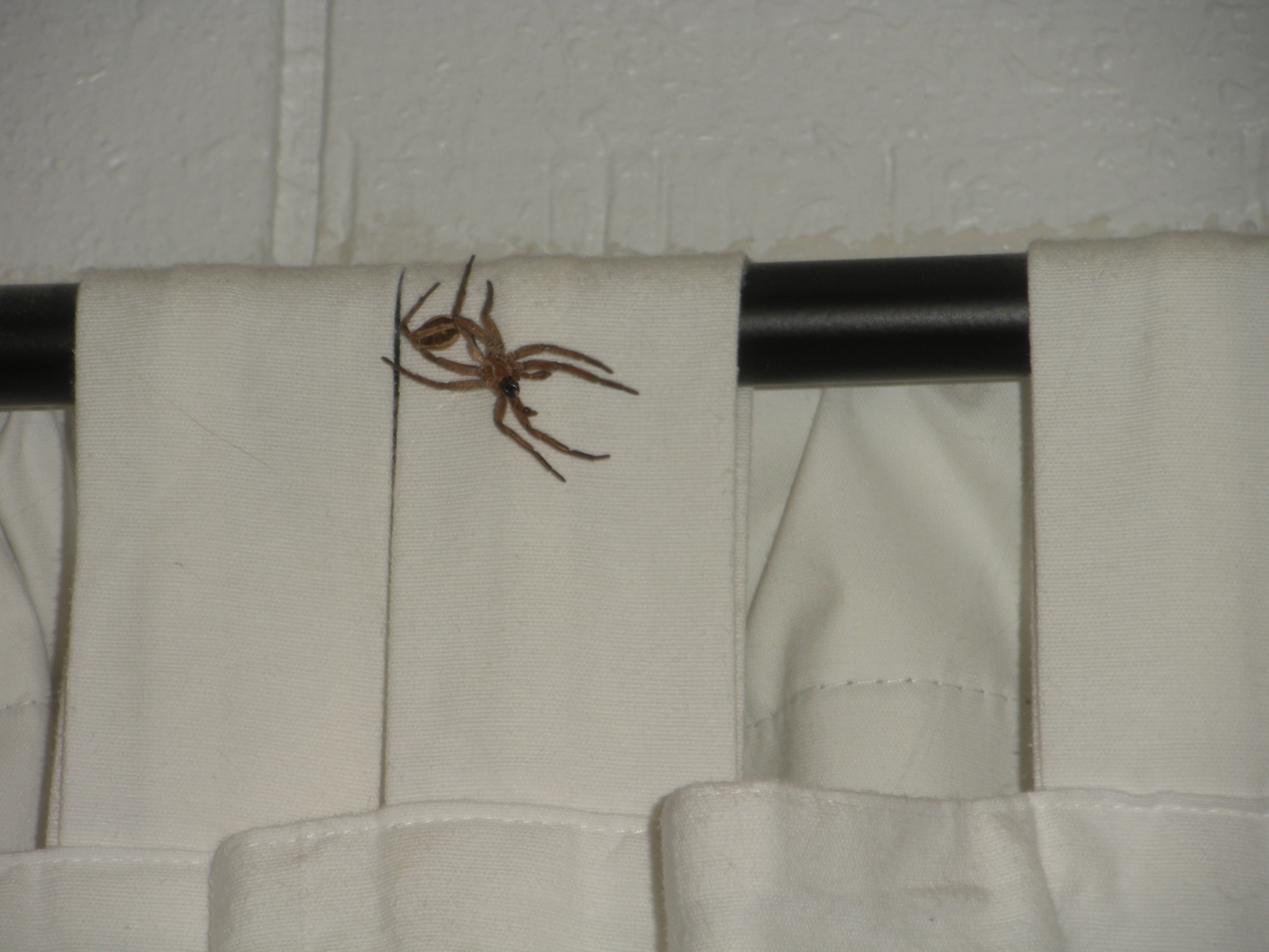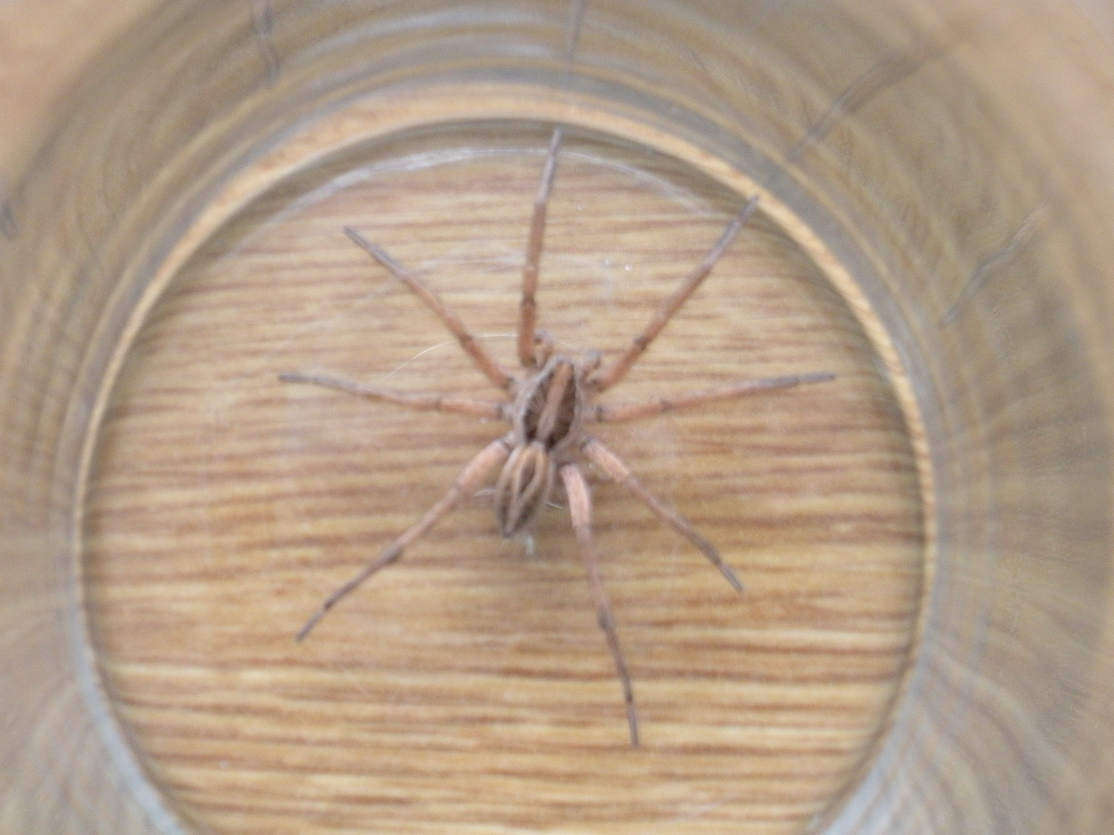 I feel only a little bit bad being happy that Homes was here, sick in bed, and I could accidentally-on-purpose wake him up to remove the spider. He took a picture of it outside in its new habitat. (For the record, “the backyard” does not count as “way the hell away from our house EEEEEEE!” as per my instructions. However, the arachnid is no longer residing in our living room and I will have to be content with that.)
