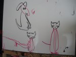 “One feather…two feathers…but he can’t fly,” she says as she deftly moves the dry erase marker across her white board. Our artist today is creating a penguin, which should be readily evident to all who view it.